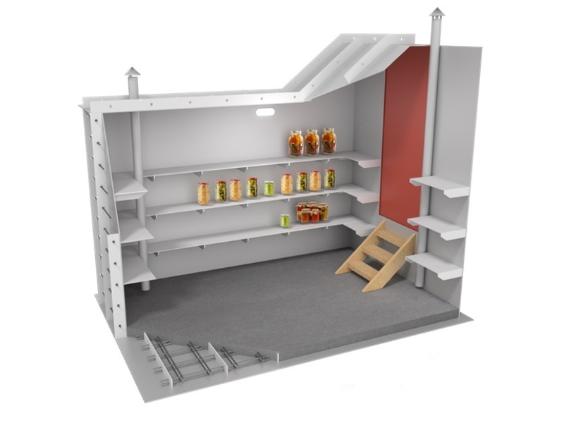 Конструкция подземного монтажа погреба "EcoWasser" разработана для организации хранения пищевой продукции. Обеспечивает многофункциональные, комфортные и безопасные условия для хранения пищевой продукции в подвальном помещении.