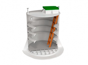 Погреб цилиндрической формы - это доступный, но не менее надежный и качественный погреб. Сама форма цилиндра обладает очень высокими прочностными характеристиками на сдавливание, именно поэтому у цилиндрических погребов нет наружных вертикальных ребер. В погребах EcoWasser «Круглый» устанавливаются полипропиленовые полки, которые выполняю роль колец жесткости, которые добавляют прочности погребу.