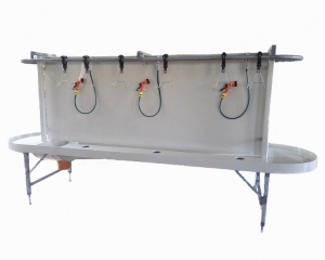 В данной конструкции внутри корпуса смонтированы все инженерные системы управления водоснабжением моющих пистолетов и кранов.