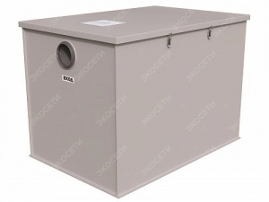 Промышленный (цеховой) жироуловитель большого объема. Устанавливается в технических помещениях крупных молочных, мясных и прочих пищевых производств. Служит для подготовки стоков к сбросу в городскую канализационную сеть. Обеспечивает достижение нормативных уровней ПДК при объеме стока не превышающем 7 литров в секунду. Очистка осуществляется илососом.
